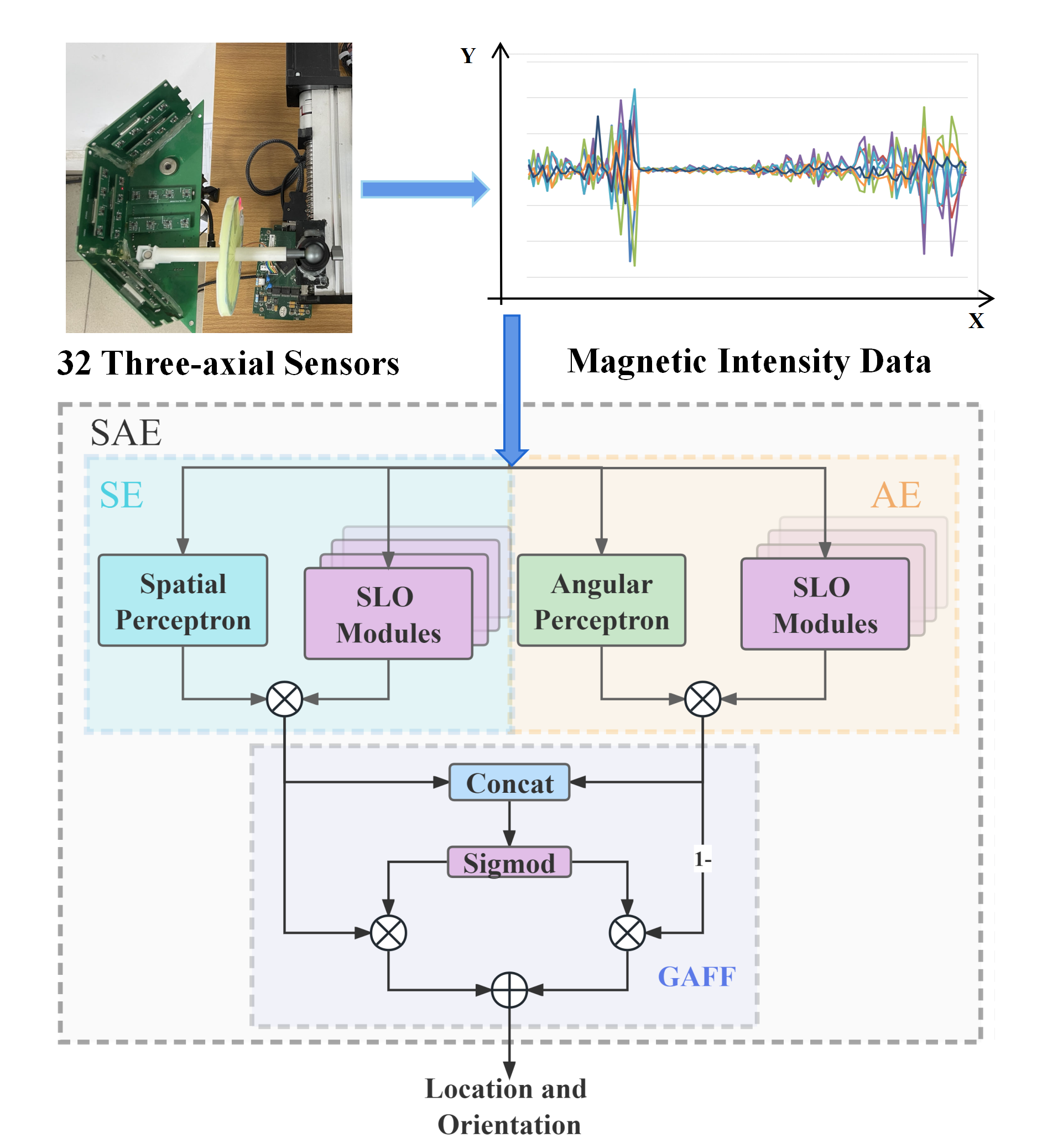 Background: Permanent magnetic localization (PML) offers a low-cost and convenient approach to wireless motion tracking. Recent neural network methods have successfully improved the practicality of PML in real-world applications. However, the neural networks are prone to overfitting because ambient noise often influences the magnetic measurements, which are highly sensitive to the magnetic tracer's location. Method: To address this problem, we propose a spatial-angular ensemble (SAE) of regional perceptrons for PML. Firstly, the SAE constructs sub-region localization (SRL) modules to estimate the tracer's state in various spatial and angular regions. Secondly, it equips the spatial-aware (SA) and angular-aware (AA) modules with the ability to select the estimates from the SRL modules. Lastly, we design an attentional feature fusion (AFF) module to dynamically integrate these localization results. The SRL, SA, and AA modules are implemented by stacking the gated multi-layer perceptrons (gMLPs), which can adaptively suppress the noisy features. Furthermore, we present a linear interpolation strategy to impose local smooth regularization during neural network training, thereby enhancing the model's generalization performance. Result: Based on the assessments of our experiment system, the proposed SAE with linear interpolation significantly outperforms the current approaches in terms of magnetic location accuracy, and its computing cost satisfies the requirements for real-time processing. Conclusion: This paper provides a feasible neural network method to reduce the impact of noises and regional differences in magnetic measurements, potentially improving the accuracy of PML.